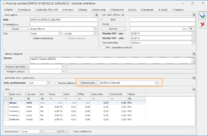 Aby powiązać produkt z opakowaniem objętym systemem kaucyjnym, należy na jego karcie w sekcji Jednostka miary, opakowania w polu Schemat opak.: przypisać wcześniej zdefiniowany schemat zawierający właściwe opakowanie.