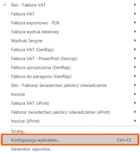 Ustawienie domyślnego wydruku możliwe jest po przejściu do okna Konfiguracji wydruków.