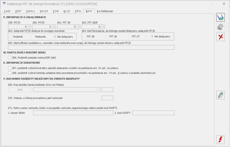 Formularz deklaracji PIT‑28 – sekcja V – X