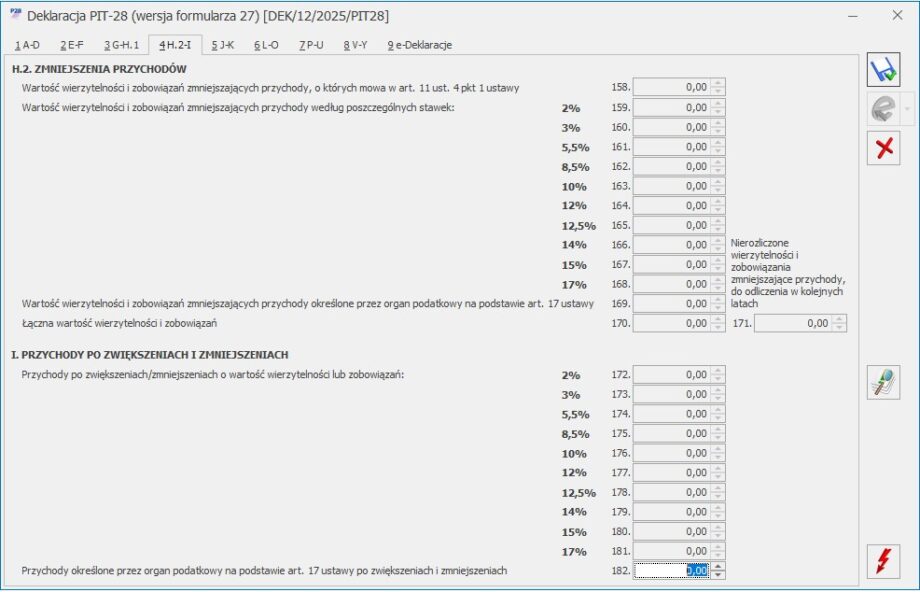 Formularz deklaracji PIT 28 – sekcja H.2 – I