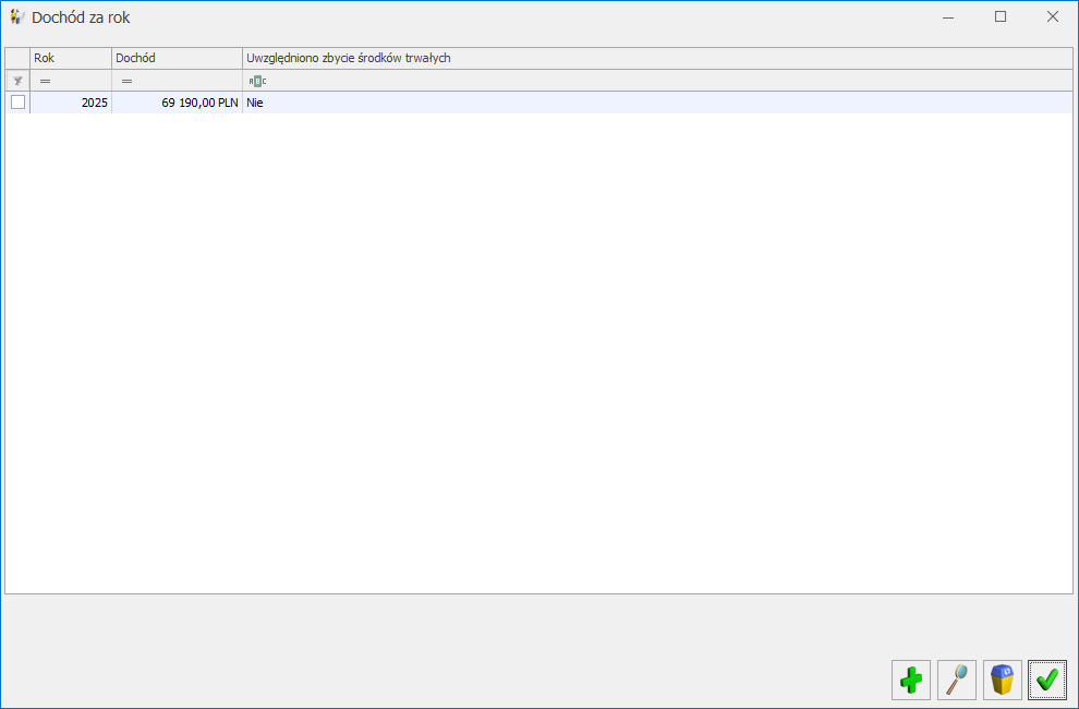 Zestawienie może zostać utworzone automatycznie w momencie naliczenia Zaliczki na PIT-36L lub wypłaty właściciela lub zostać dodane bezpośrednio na liście przez Użytkownika.
