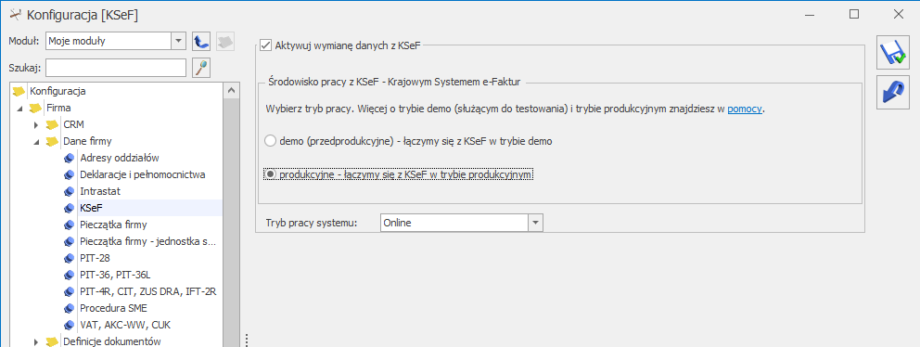 Funkcja eksportu faktur w formacie pdf dostępna jest bez modułu Obieg dokumentów, natomiast użytkownicy posiadający moduł Obieg dokumentów mają dostęp do Faktur w formacie PDF również w Archiwum Wydruków.