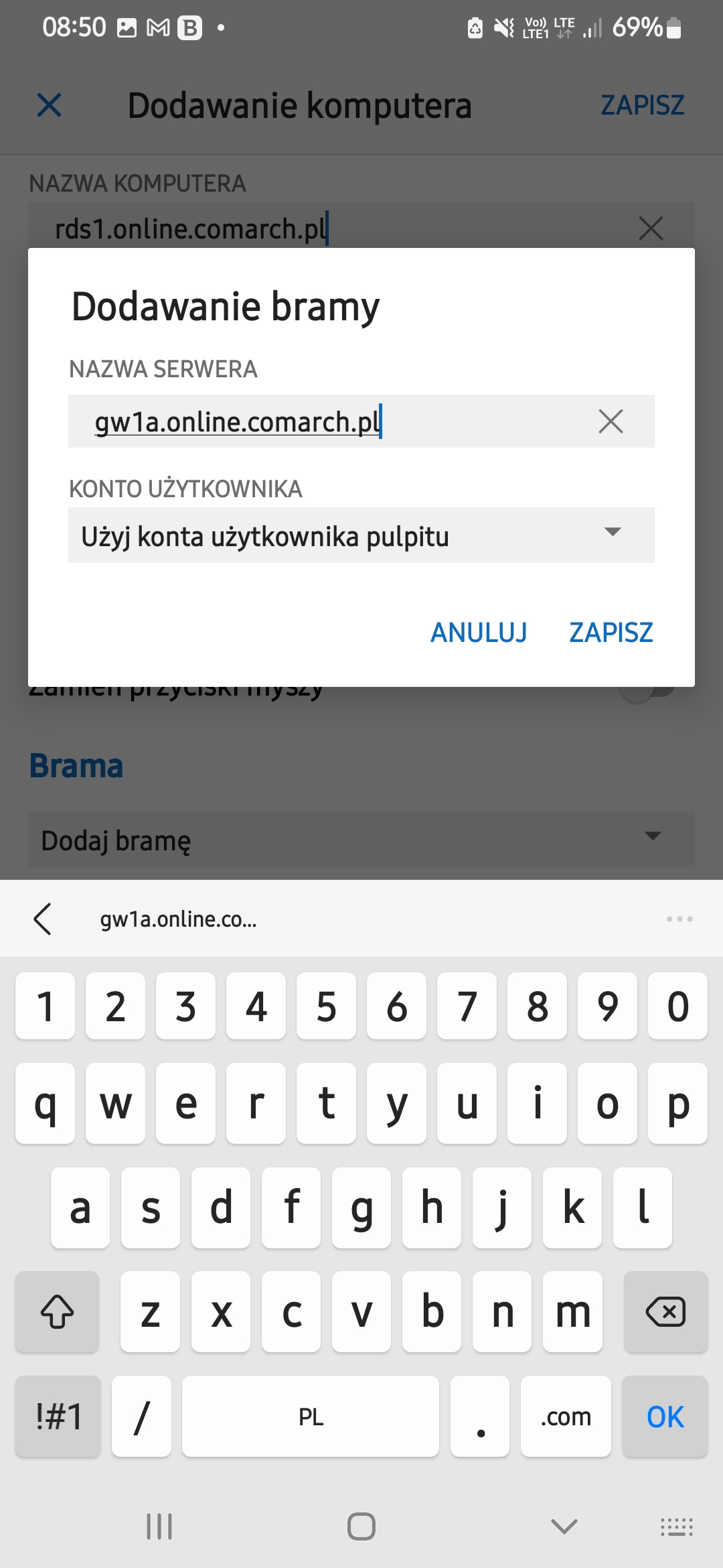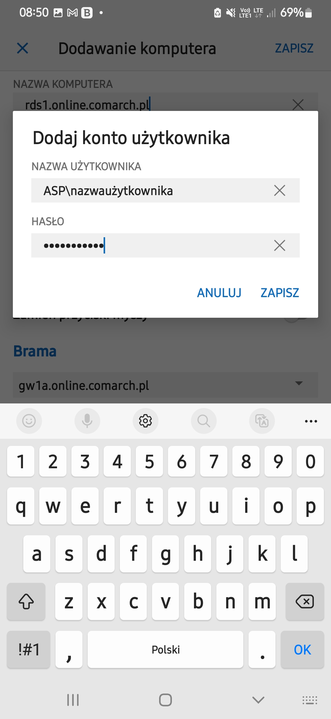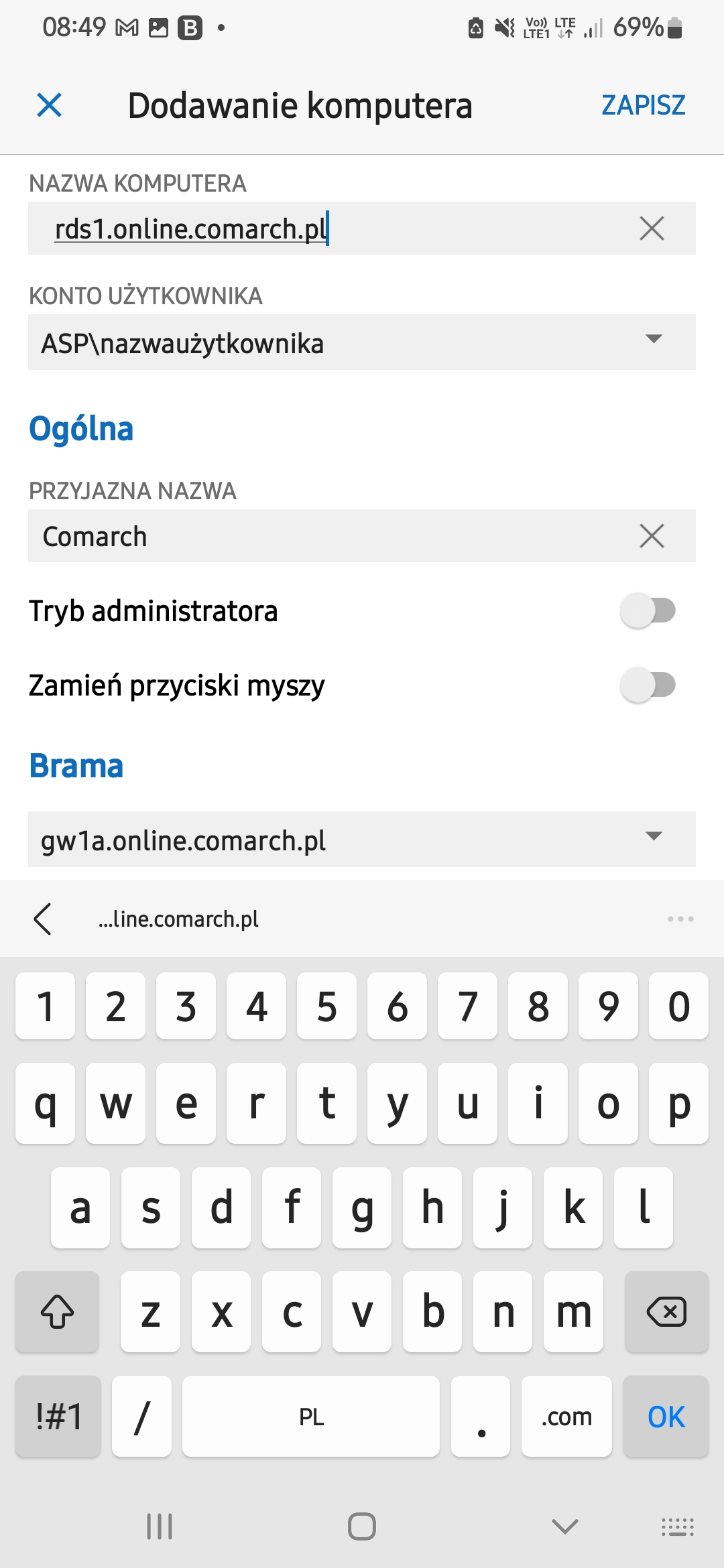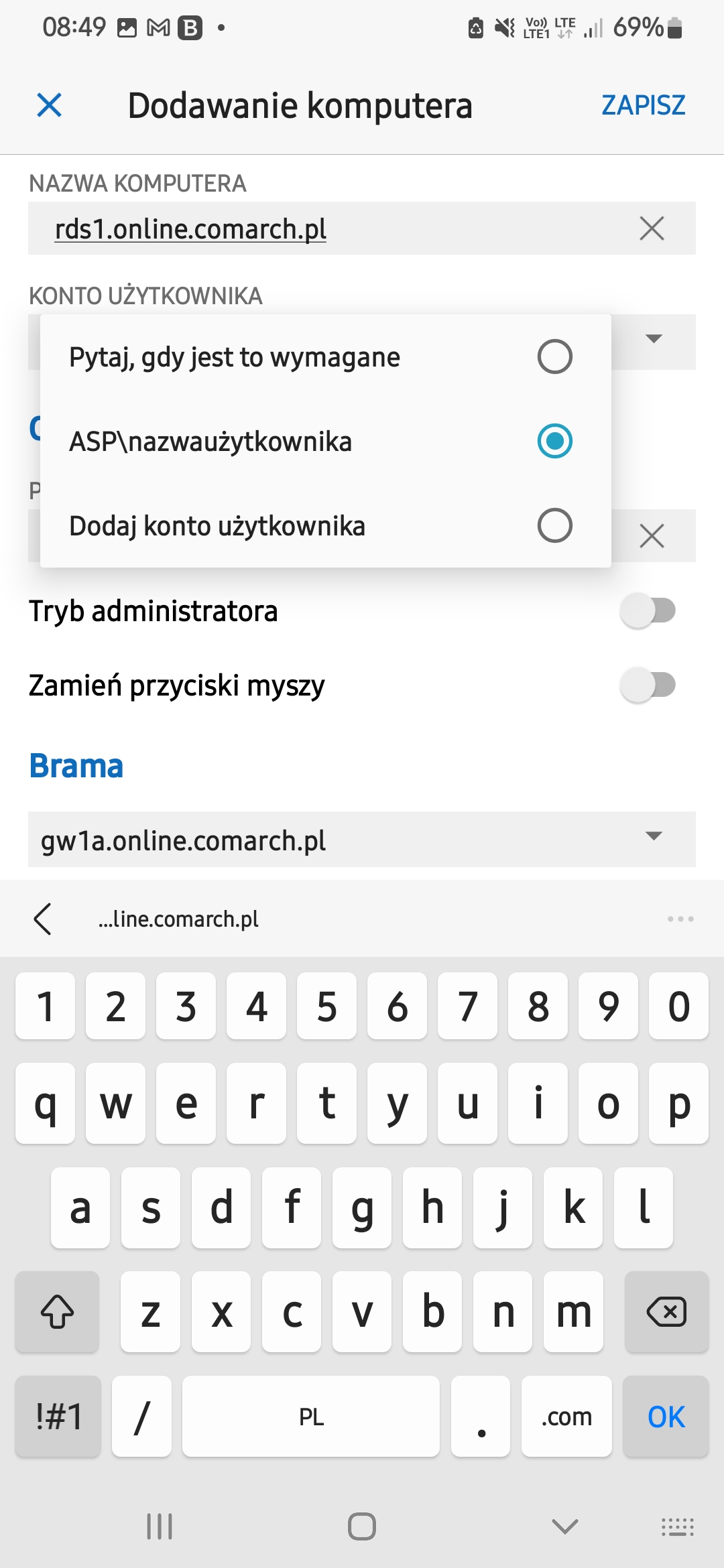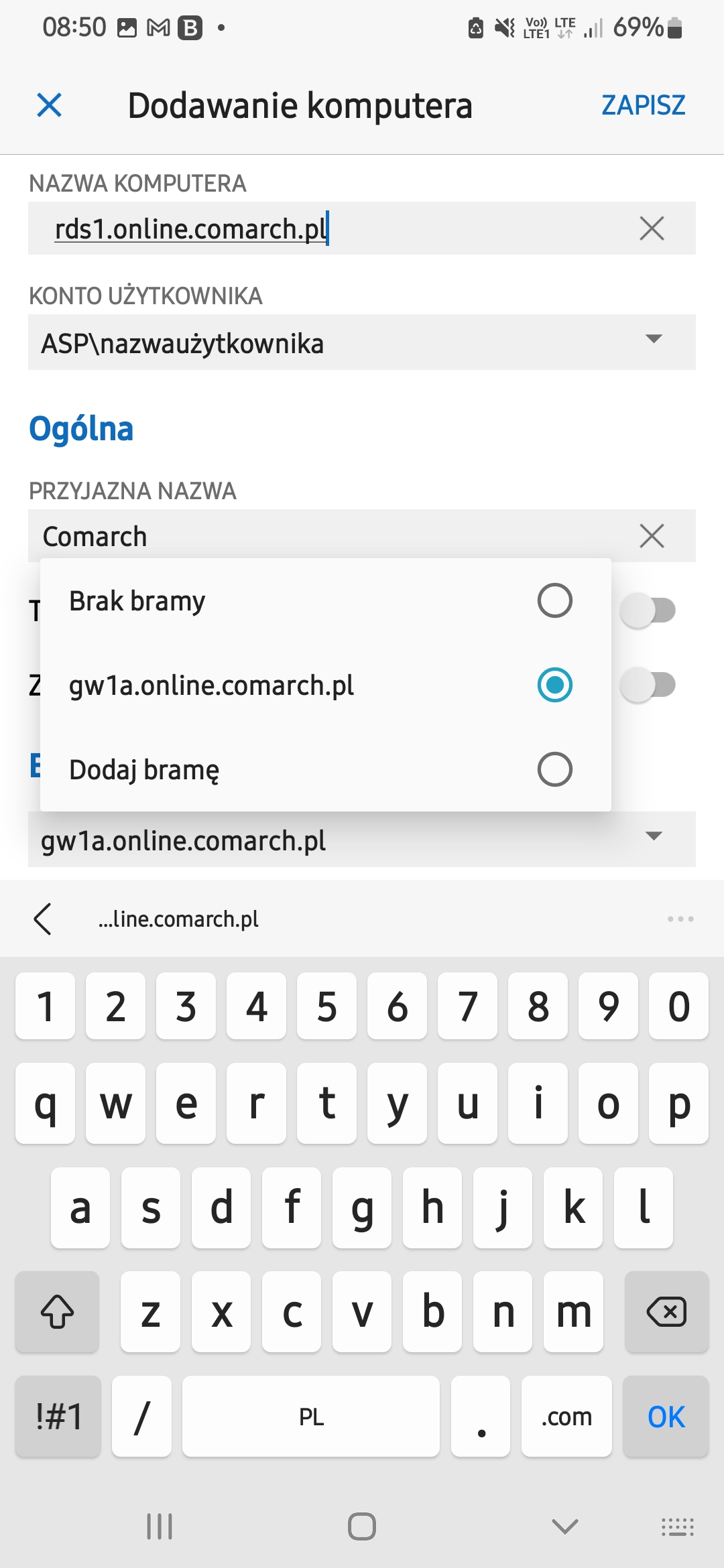 Konfiguracja klienta Microsoft Windows App na systemie Android dla Comarch ERP Optima Chmura Standard