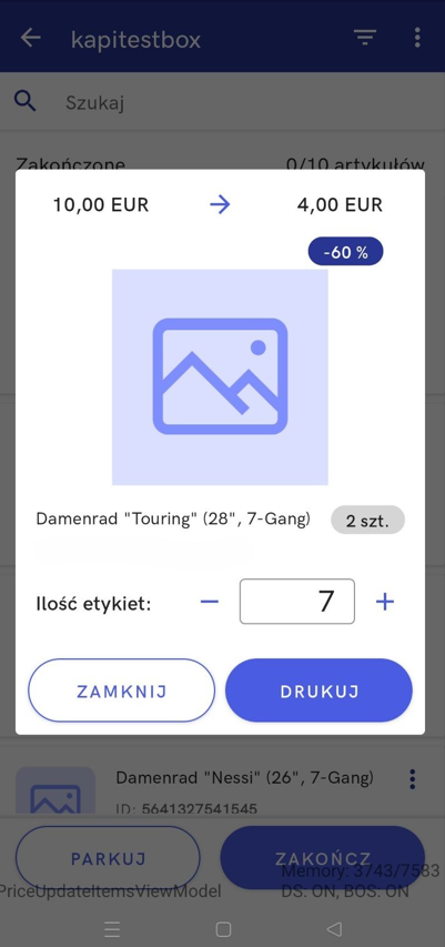 Edycja ilości etykiet cenowych do wydruku i prezentacja rabatu procentowego