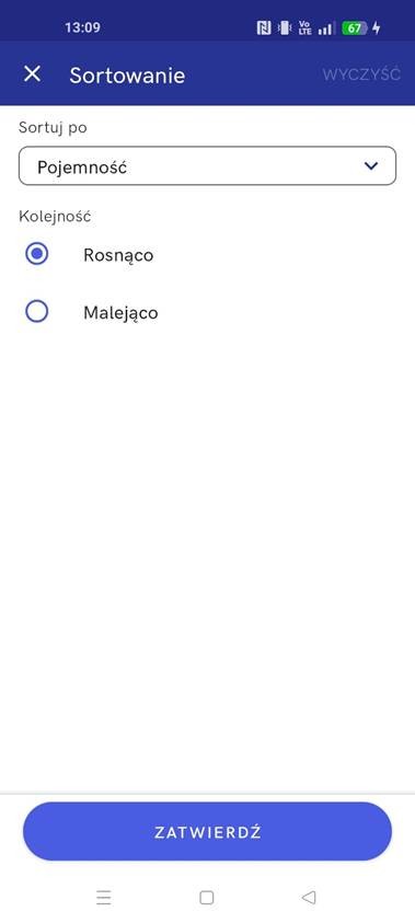 Pełnoekranowe menu pozwala na precyzyjne filtrowanie po: