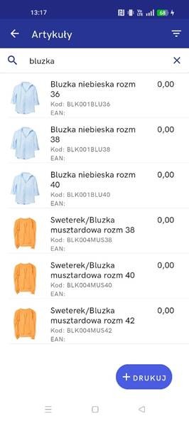 Pasek wyszukiwania obsługuje teraz wiele słów jednocześnie (logika AND), przeszukując nazwy, kody i warianty bez konieczności otwierania szczegółów produktu.