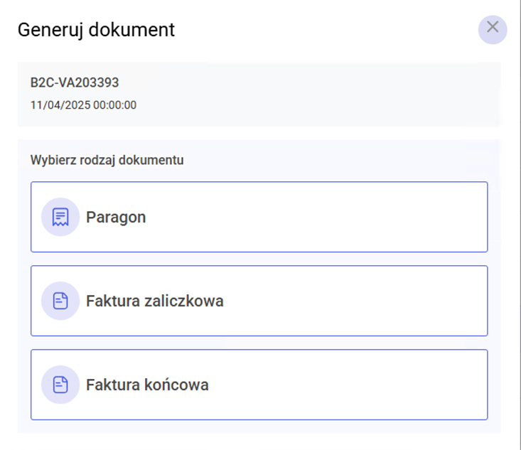 W związku z tym generowane są dwa oddzielne dokumenty handlowe: