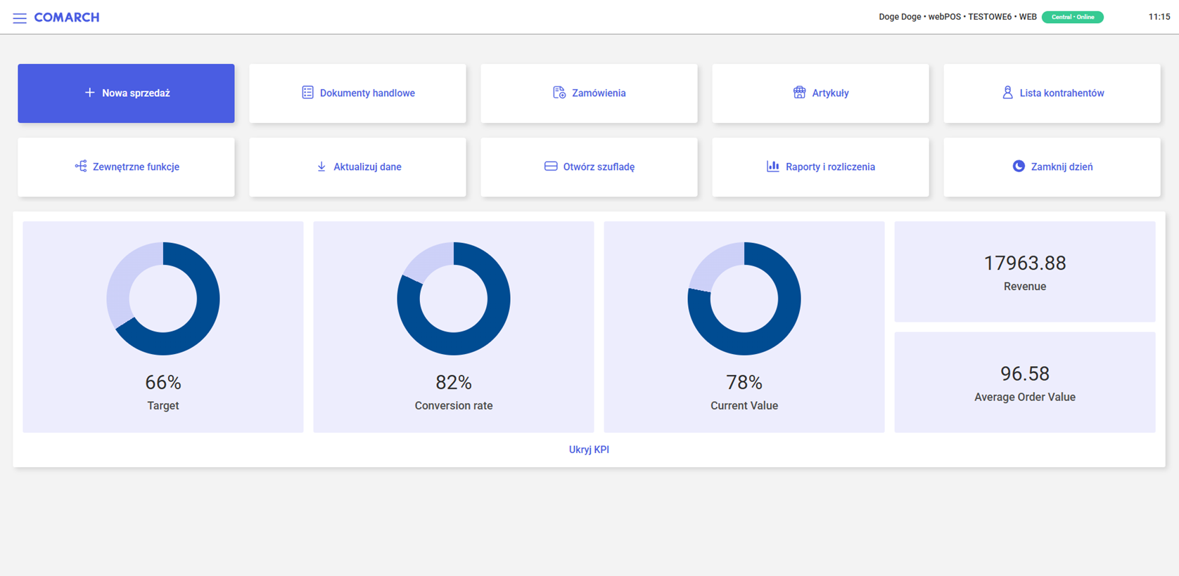 Na stanowiskach webPOS wprowadzono możliwość podglądu wskaźników KPI. Obsłużono możliwość wyświetlenia następujących statystyk: