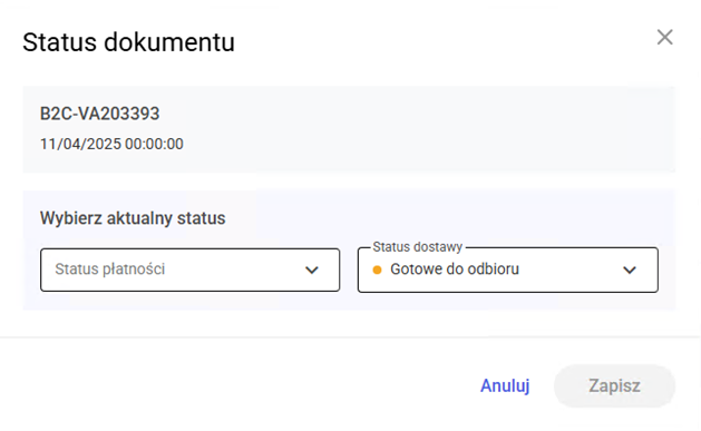 Zmiana statusu dokumentu zamówienia sprzedaży