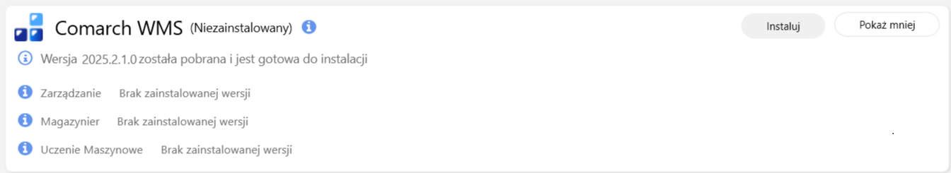 Instalacja Comarch WMS Magazynier odbywa się przy pomocy wcześniej zainstalowanego programu Comarch ERP Auto Update.