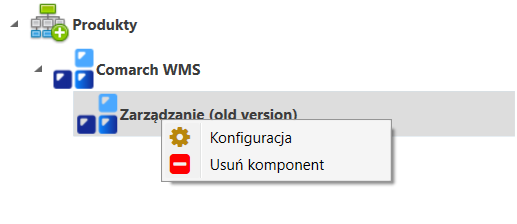 Aby skonfigurować komponent Comarch WMS Zarządzanie (old version) należy nacisnąć prawym przyciskiem myszy na komponencie i wybrać opcję [Konfiguracja].