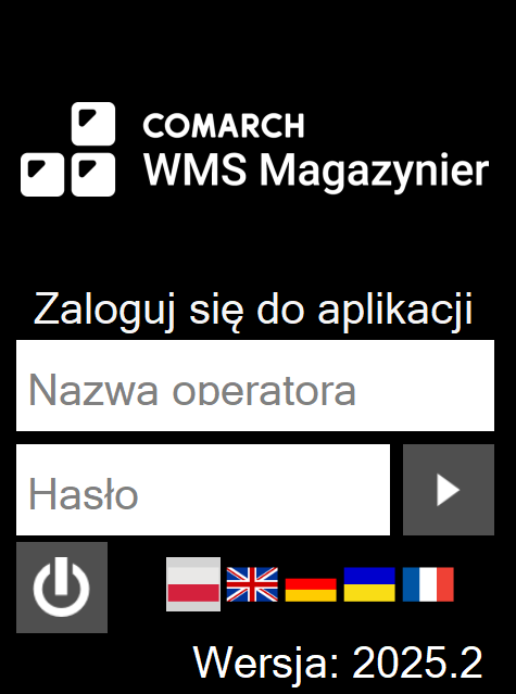 Następuje zalogowanie operatora do sesji terminalowej. Aplikację Comarch WMS uruchamiamy ze skrótu znajdującego się na pulpicie. Następnie należy wprowadzić login i hasło do aplikacji.
