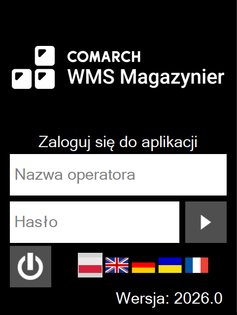 Następuje zalogowanie operatora do sesji terminalowej. Aplikację Comarch WMS uruchamiamy ze skrótu znajdującego się na pulpicie. Następnie należy wprowadzić login i hasło do aplikacji.