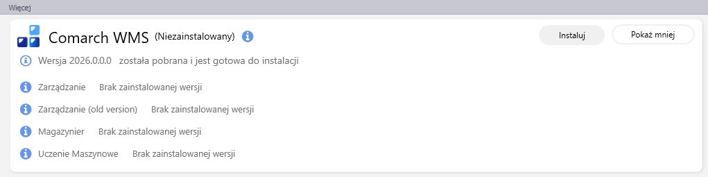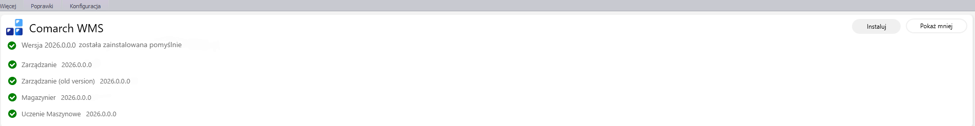 Po skończonej instalacji pojawi się informacja w oknie głównym Comarch ERP Auto Update: