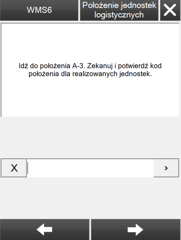 Po jego wybraniu przedstawiony zostanie krok z położeniem docelowym, na które mają zostać odłożone przypisane jednostki logistyczne.
