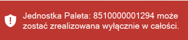 Z tego poziomu nie ma możliwości realizacji pozycji pojedynczo. Przy próbie podniesienia którejś z pozycji zostanie przedstawiony komunikat.