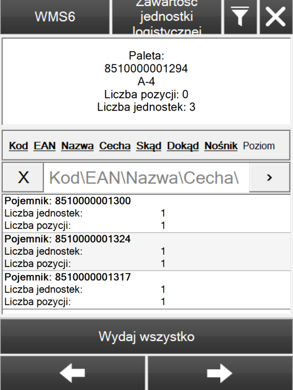Po ich potwierdzeniu zaprezentowana zostanie lista pozycji znajdujących się na danej jednostce.