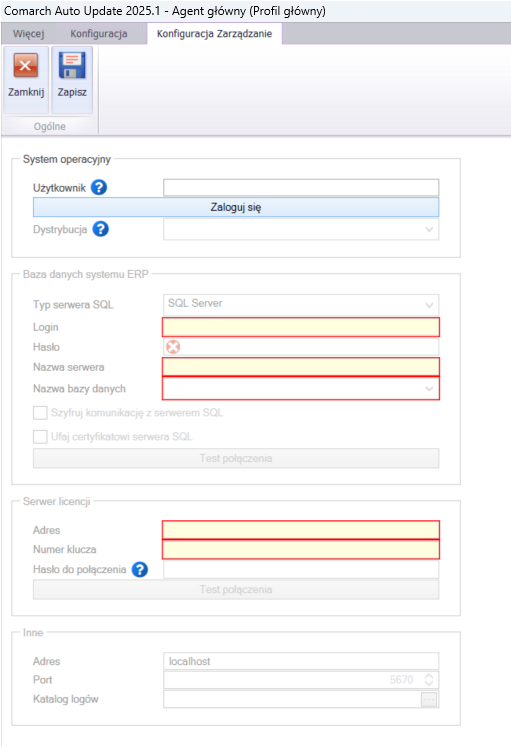 - Katalog logów – miejsce, w którym będą zapisywane logi aplikacji Comarch WMS Zarządzanie.