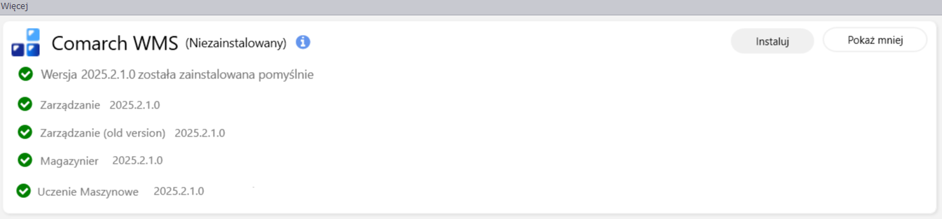 Po skończonej instalacji pojawi się informacja w oknie głównym Comarch ERP Auto Update: