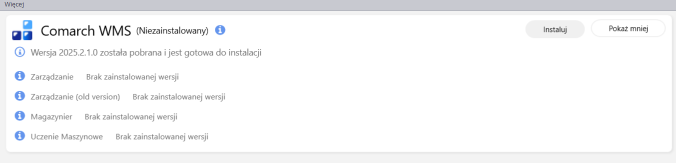 W Comarch Auto Update w wersji 2025.1.6133.1 udostępniona została konfiguracja nowego interfejsu WMS Zarządzanie (dostępna jako komponent Zarządzanie).