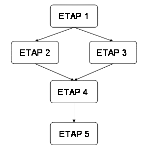 Przy tak skonstruowanym schemacie, po wykonaniu ETAPU 1 operator przekaże proces do realizacji ETAPU 2. Ale operator będzie mógł wykonać ETAP 2 dopiero w przypadku, gdy ETAP 4 i ETAP 5 zostaną wykonane (są obowiązkowe).
