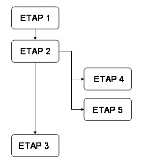 Przy tak skonstruowanym schemacie, po wykonaniu ETAPU 1 operator będzie mógł wybrać, czy kolejnym etapem będzie ETAP 2 czy ETAP 3. Tym samym będzie mógł ominąć wykonanie ETAPU 2. Jeśli jednak zadecyduje o wykonaniu ETAPU 2 to i tak kolejnym etapem będzie ETAP 3.