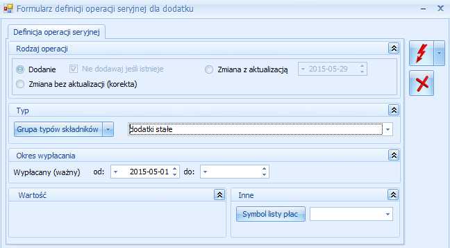 • „Wypłacany (ważny) Do” jest pusta – operacja seryjna nie zmieni daty „ważny Do” na dodatku;