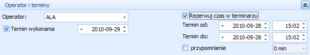 - operator – dla którego wyświetlany jest terminarz (pod warunkiem, że włączono grupowanie),