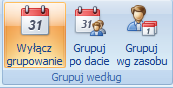 - wyłącz grupowanie – wyświetlane są wydarzenia dla wszystkich zaznaczonych operatorów na jednym wspólnym terminarzu. Zadania przypisane do wielu operatorów (uczestników) zostaną wyświetlone tyko raz.