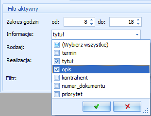 - wszystkie – wyświetlą się wszystkie rodzaje: zadania CRM, czynność serwisowa, obieg dokumentów,