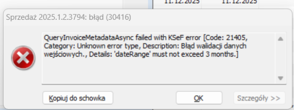 Przy próbie pobrania faktury z ksef metodą “Numer KSeF” lub “Nowe” pojawia się komunikat:” ?