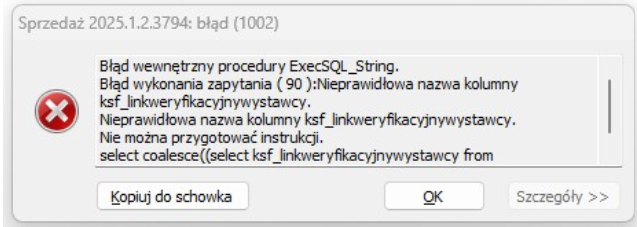 Co oznacza błąd ‘Nieprawidłowa nazwa kolumny ksf_linkweryfikacyjnywystawcy’ podczas edycji faktury wysłanej do KSeF?